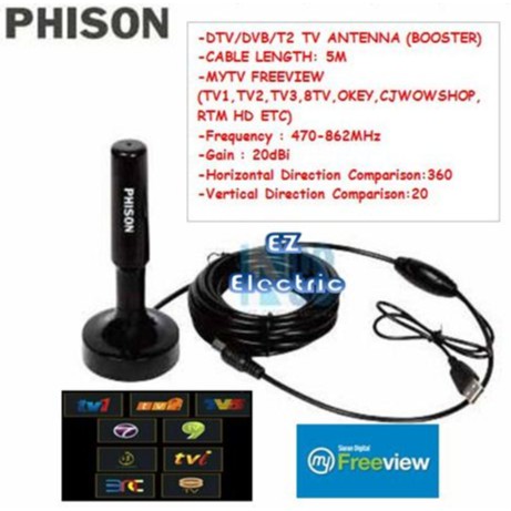PHISON PA-18T2 DVB/HDTV/T2/DTV Digital Indoor Antenna w Booster-5 Meters (Strong Signal) - 25dBi (MYTV) | Shopee Malaysia